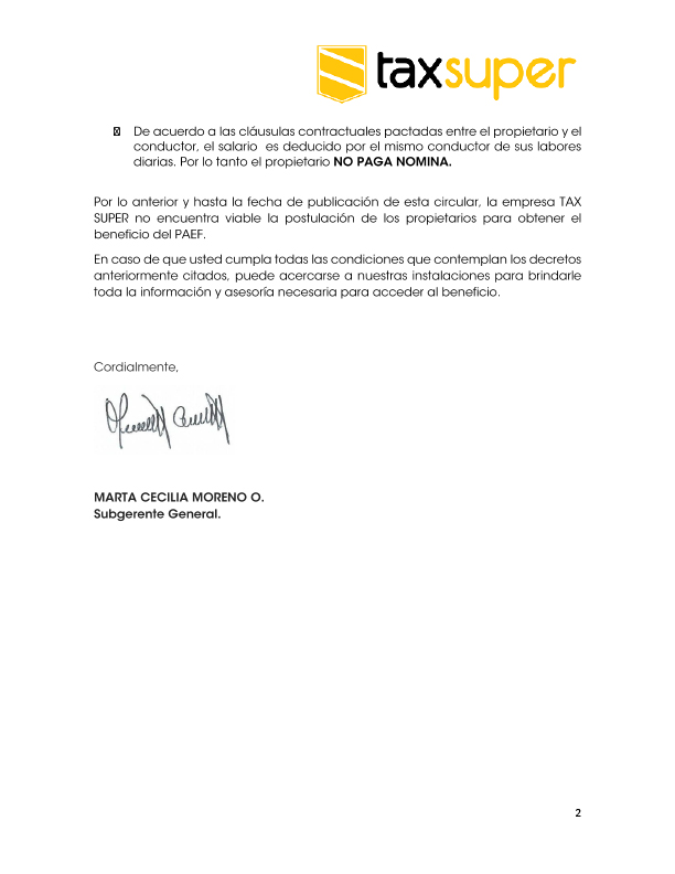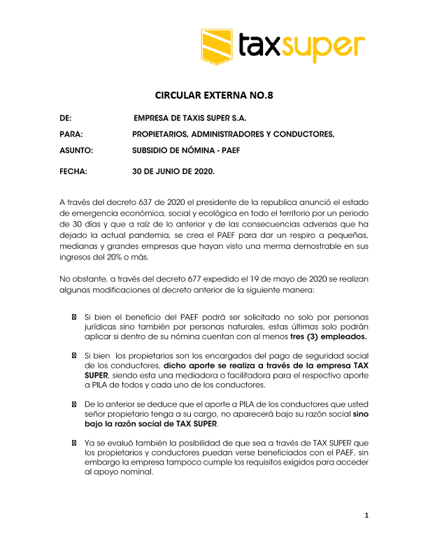 Circular Externa No.8 Subsidio de Nómina PAEF