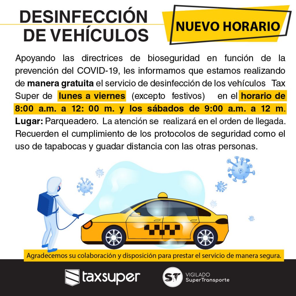 Te invitamos a prestar un servicio seguro. Nuestro horario de desinfección de vehículos es de lunes a viernes de 8:00 a,m, a 12 m y los sábados de 9:00 a.m. a 12.